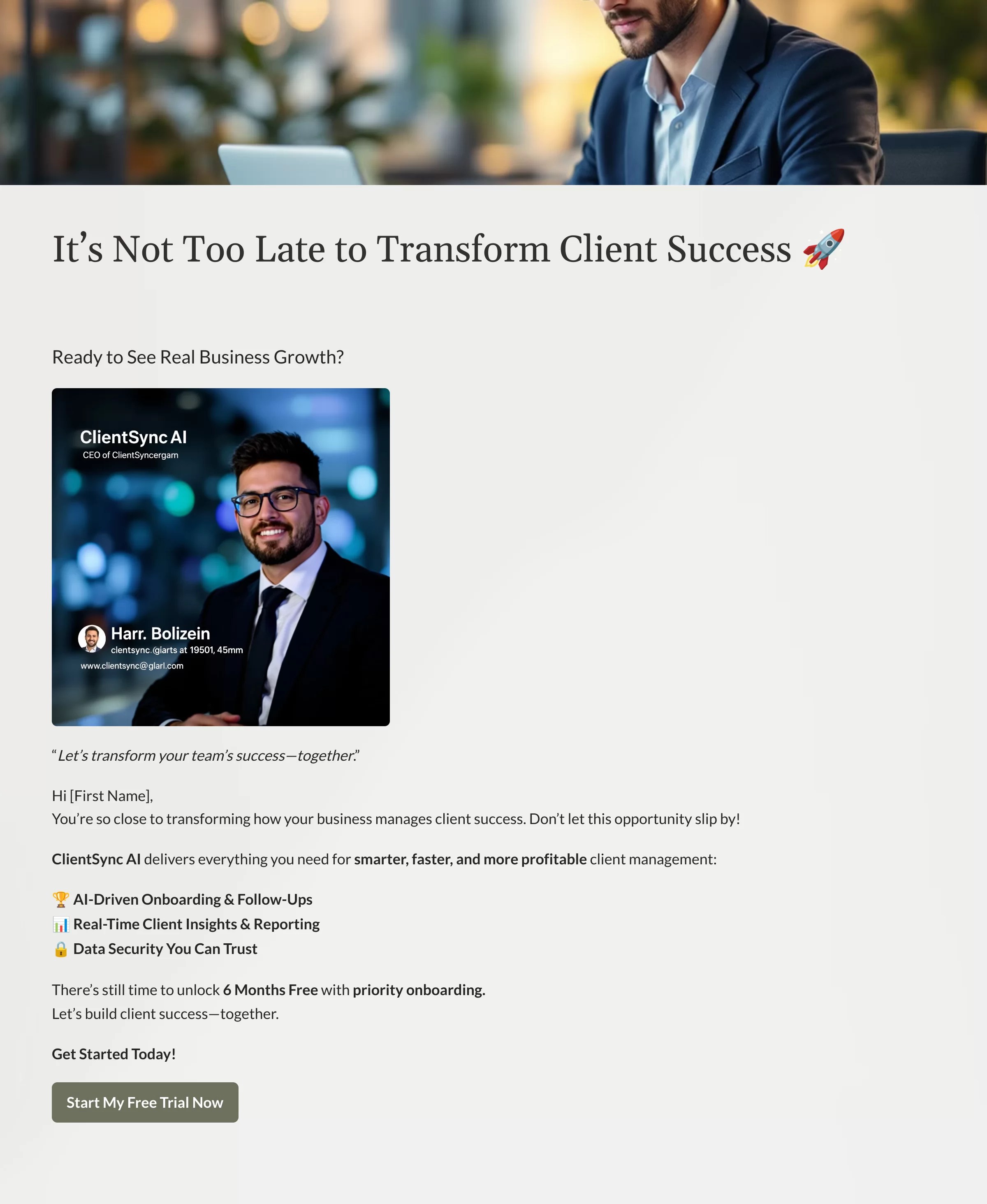 Welcome to the email campaign section of my portfolio, where I demonstrate how the messaging for ClientSync AI and TalentPulse Pro evolves when delivered through a carefully crafted sequence of five concise messages. Unlike the more expansive web pages or blog posts, these emails are designed to be quick reads that grab attention, highlight key benefits, and steadily nurture interest over time.